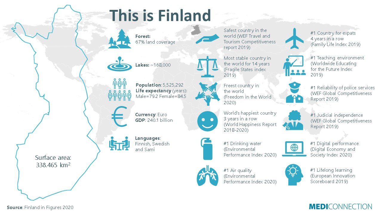 Capital: Helsinki (1.5 million inhabitants in metropolitan area)